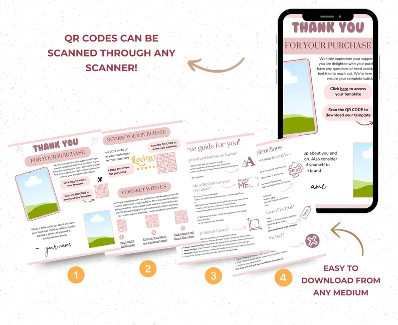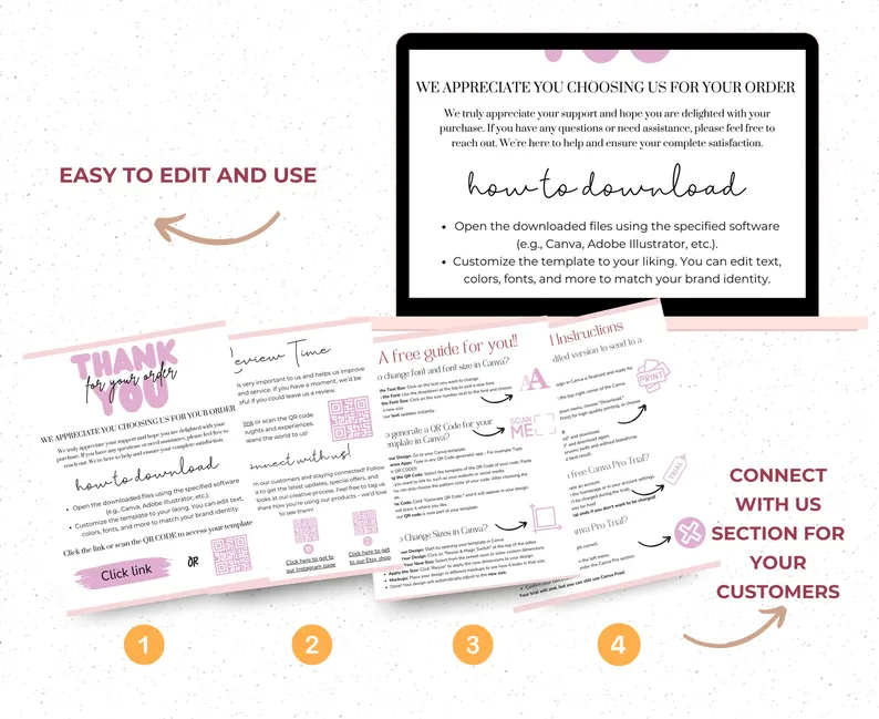 Digital Download Instruction Templates for Digital Products, Template For Digital Product Sellers, Canva instruction pdf thank you template
