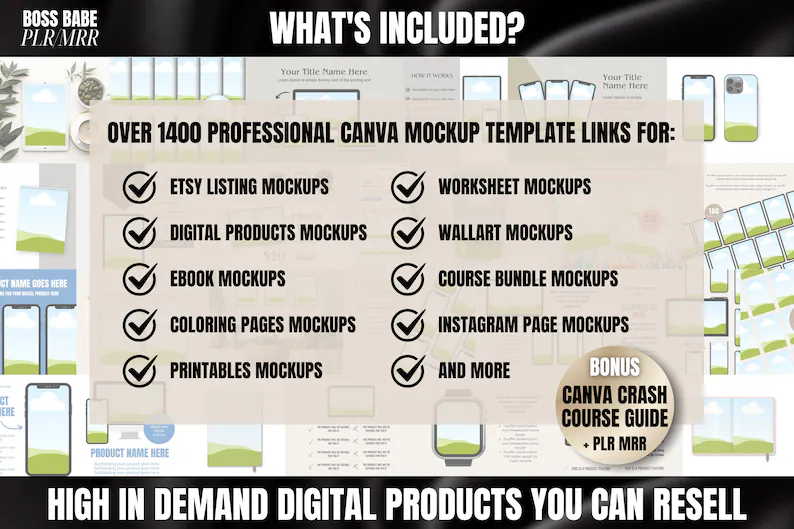 Boss Babe PLR MRR have spent countless hours to the best version it could be, so you can save TONS OF TIME and MONEY! Plus Canva Mockup Templates are the best seller PLR Digital Products and are in high demand.🤯