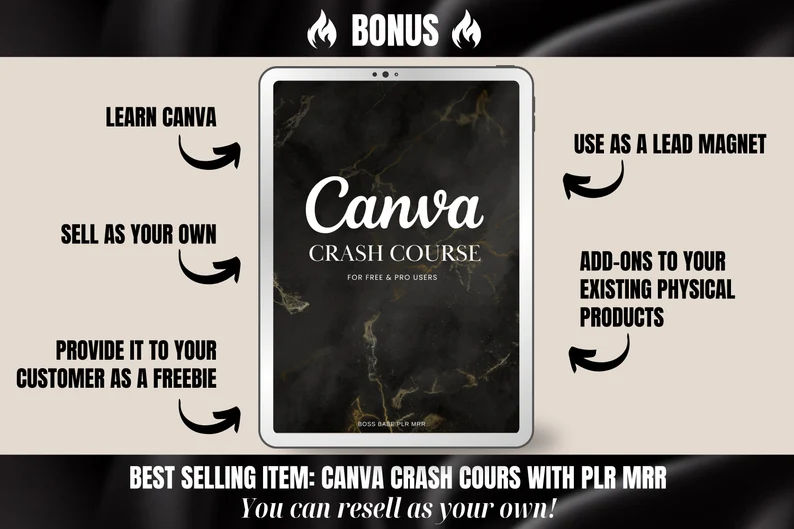 Boss Babe PLR MRR are now offering FREE Canva Crash Course – another best selling product – so you can learn Canva and also resell it as your own.🤯