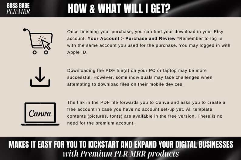 Boss Babe PLR MRR is all about helping Etsy sellers and digital product sellers make it easy for you to kickstart and expand your digital businesses with premium PLR and MRR products, so favorite our shop to get future updates!!